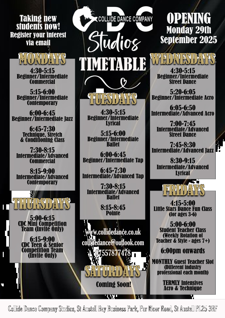 CDC is an award winning dance school based in St Austell.. come along and join our dance family!